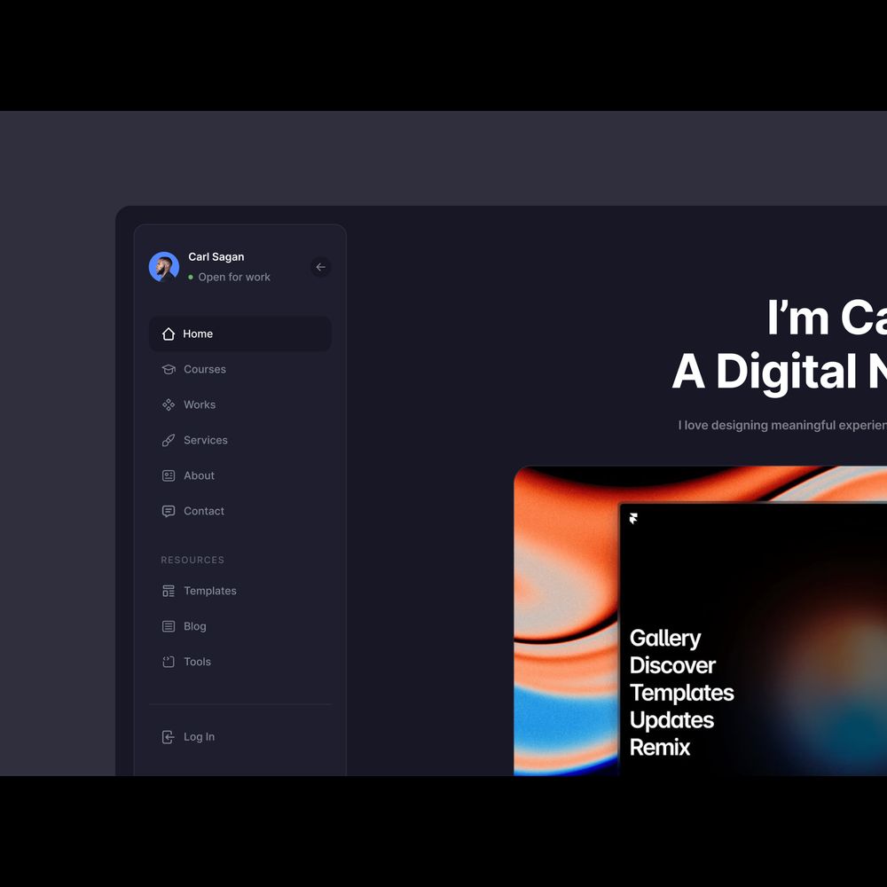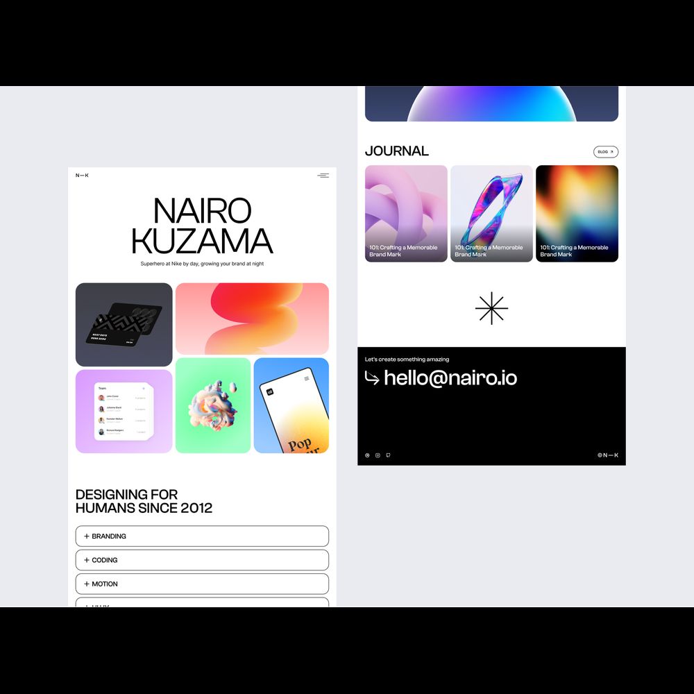 Nairo is designed to showcase and elevate your projects to new heights, Whether you're a seasoned professional or a budding enthusiast, Nairo’s intuitive interface empowers you to express your unique vision with unparalleled ease. Live preview: https://nairo.framer.website/