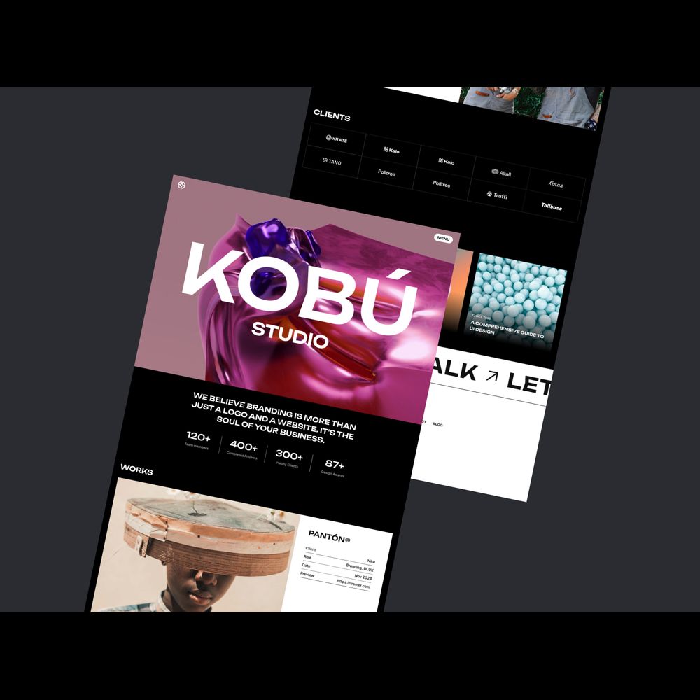Unleash your creative vision with Kobu. A template meticulously crafted for agencies, studios, and bold minds. Built on best UI/UX practices, Kobu bends effortlessly to your brand's unique voice, transforming your work into a captivating experiences.. Live preview: https://kobu.framer.website/