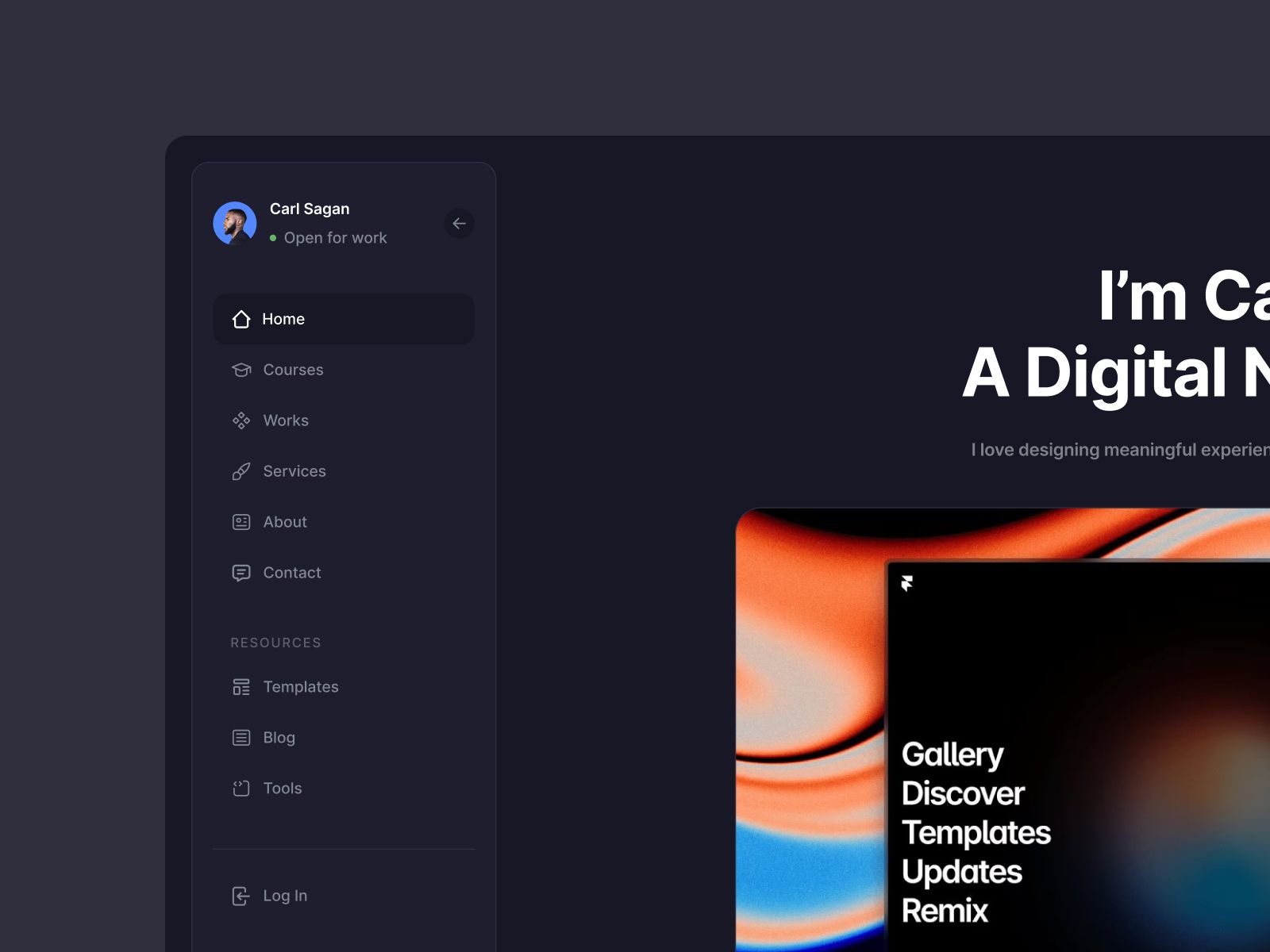 Nairo is designed to showcase and elevate your projects to new heights, Whether you're a seasoned professional or a budding enthusiast, Nairo’s intuitive interface empowers you to express your unique vision with unparalleled ease. Live preview: https://nairo.framer.website/