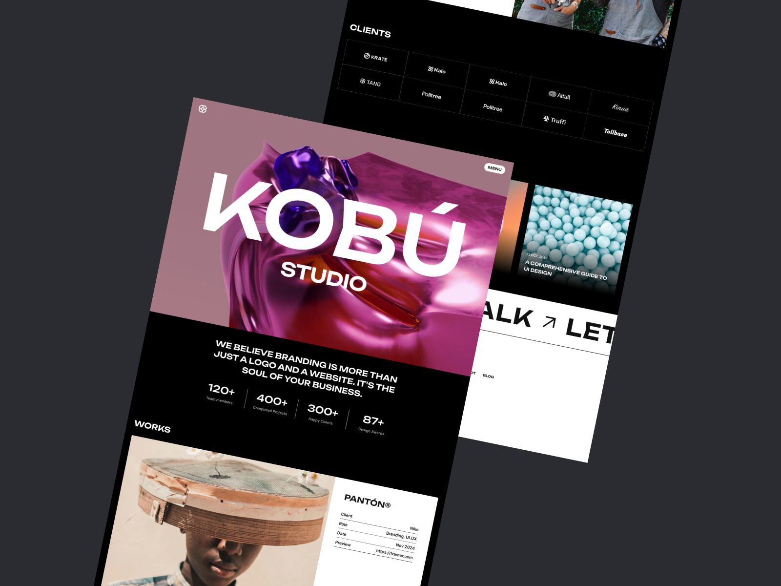 Unleash your creative vision with Kobu. A template meticulously crafted for agencies, studios, and bold minds. Built on best UI/UX practices, Kobu bends effortlessly to your brand's unique voice, transforming your work into a captivating experiences.. Live preview: https://kobu.framer.website/